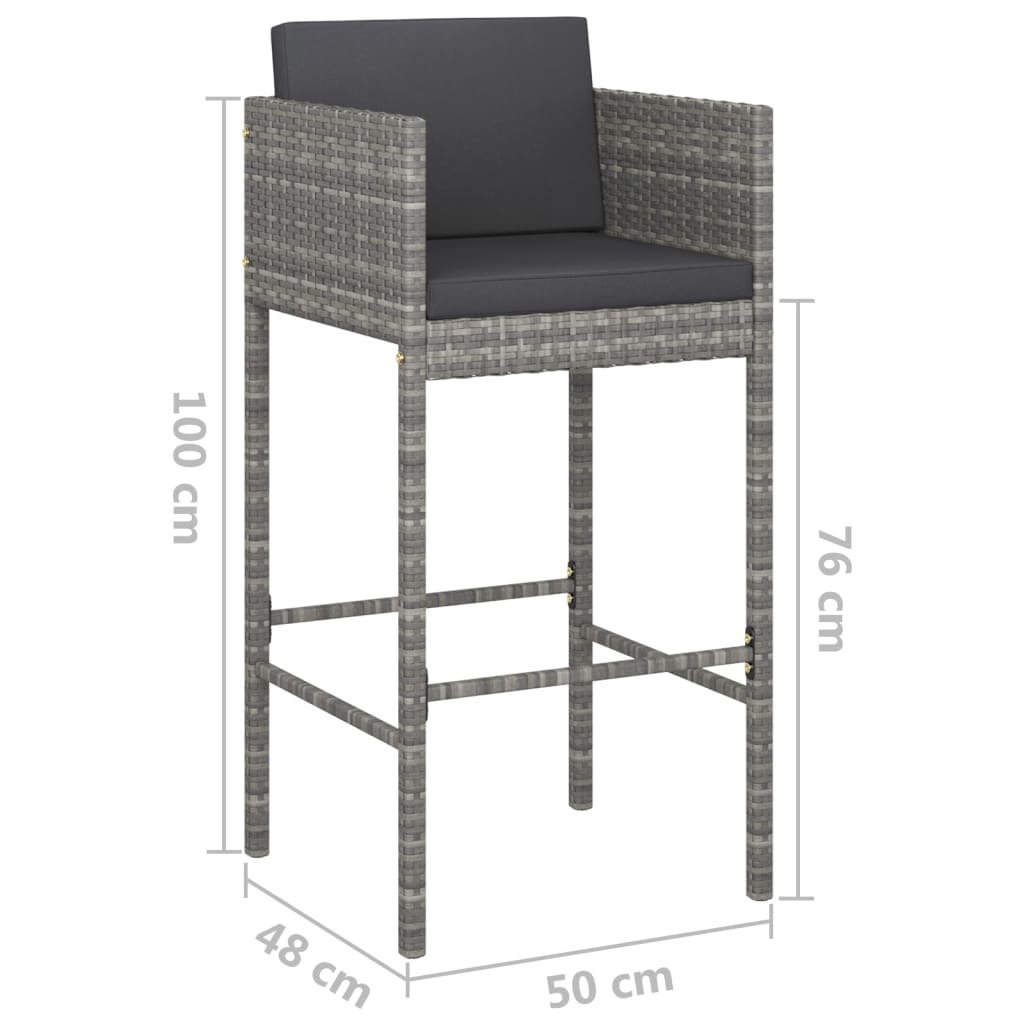 3 Piece Patio Bar Set with Cushions Poly Rattan Gray