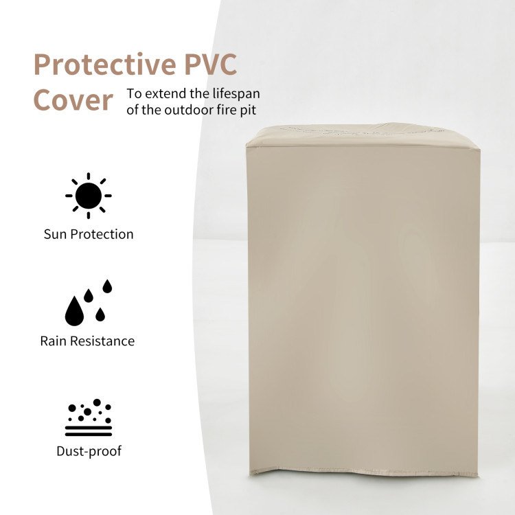 A waterproof PVC cover will protect the fire pit table from rain and sun