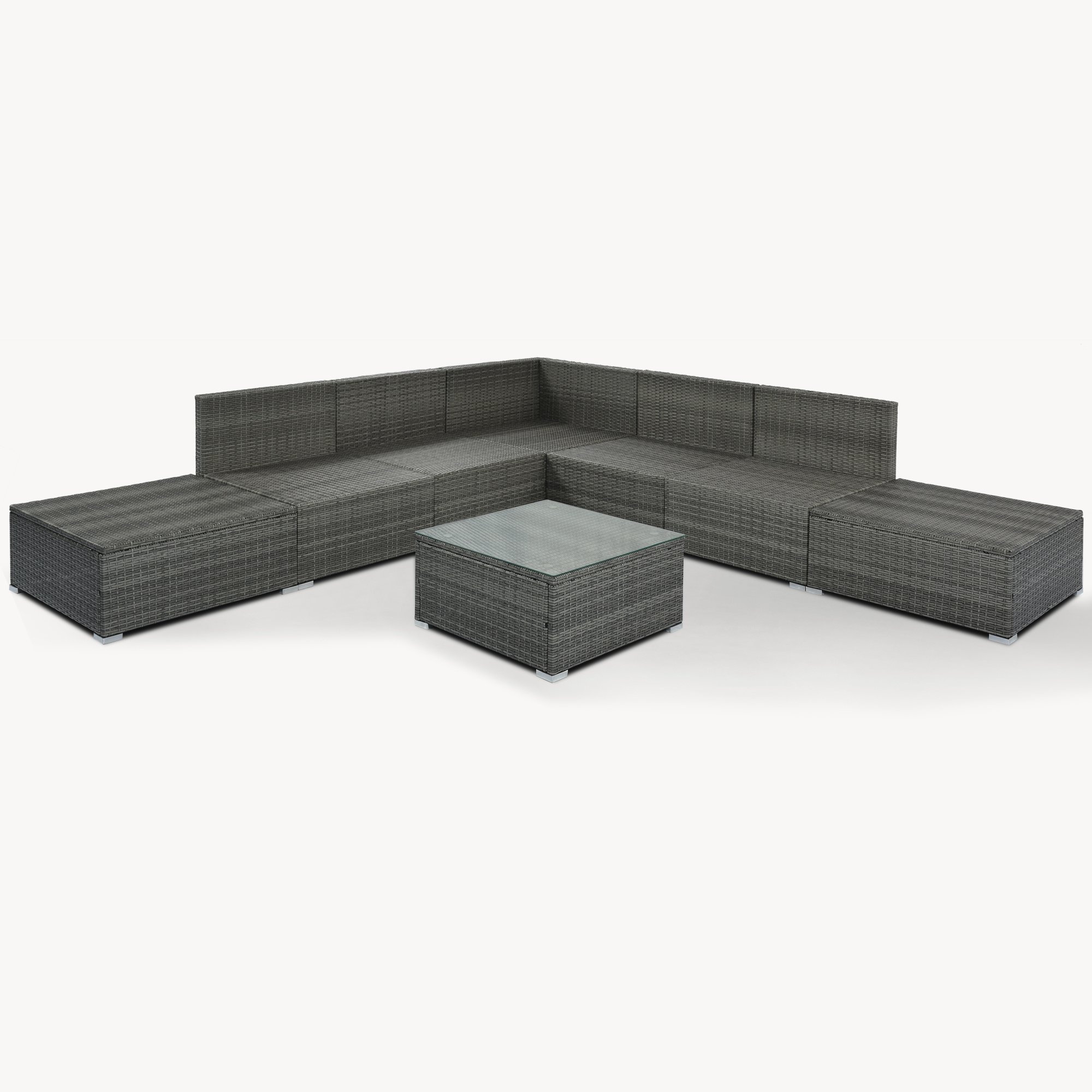 [Perfect Design] This wicker sofa set is made of sturdy iron frame and top quality wicker, including 1 corner sofa, 4 single sofa, 2 ottomans and 1 coffee table. Black hand woven wicker with the comfortable look and texture of natural wicker, thicker cushions and pillows for your ultimate enjoyment, safe and tough tempered glass, they all have high UV resistance and water resistance for years of use.