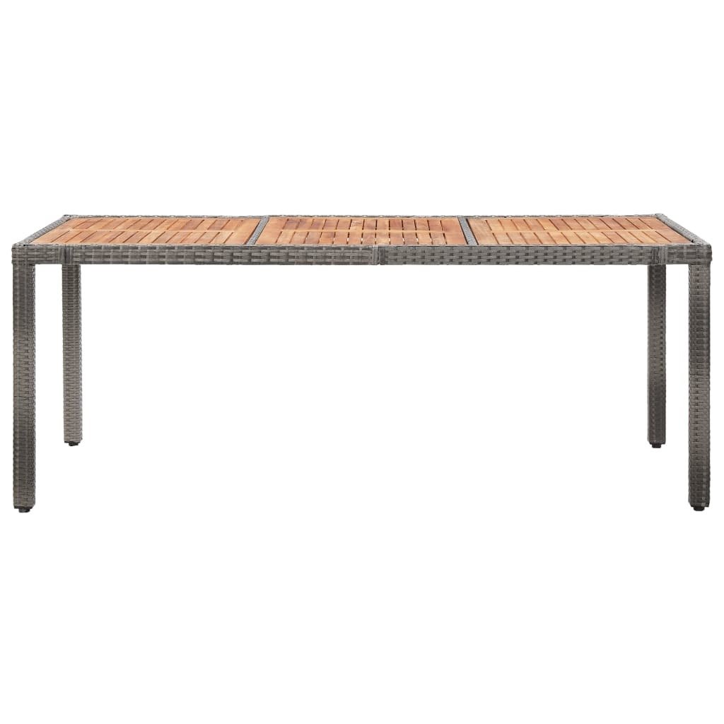 The garden dining set is made of water-resistant and maintenance-free PE rattan, enabling it easy to clean with a damp cloth as well as perfect for outdoor use. Steel frame, solid acacia wood armrests and tabletop contribute to the set's strong and stable construction, and also add to its rustic style. The included, thickly padded seat cushions bring you optimum seating comfort. Additionally, thanks to its light weight, you can move this outdoor dining set around your house with great ease.