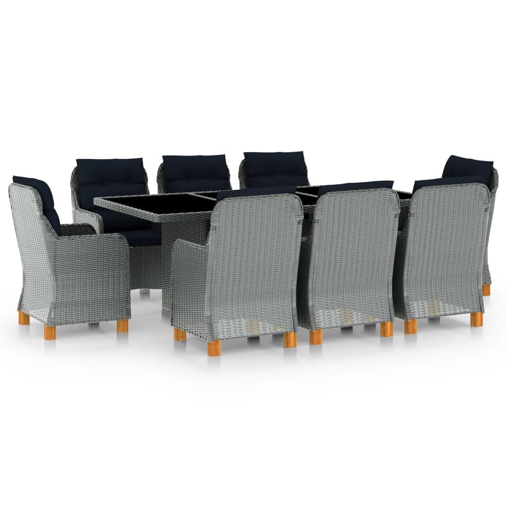 Home > 9 Piece Patio Dining Set with Cushions Poly Rattan Light Gray