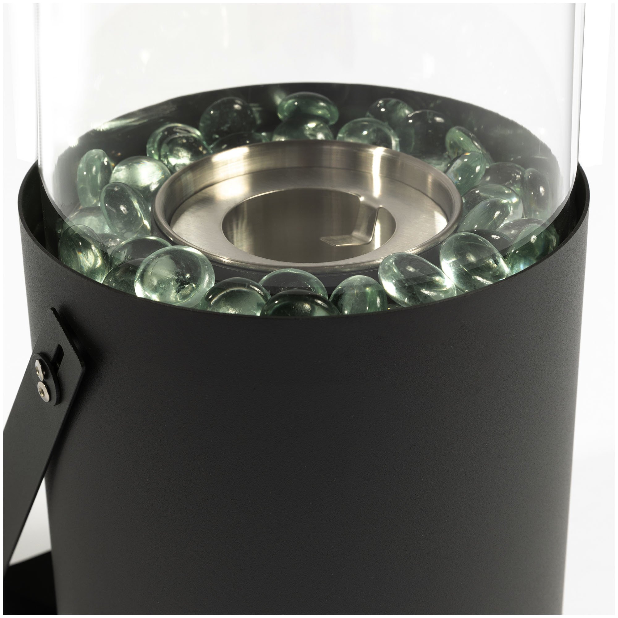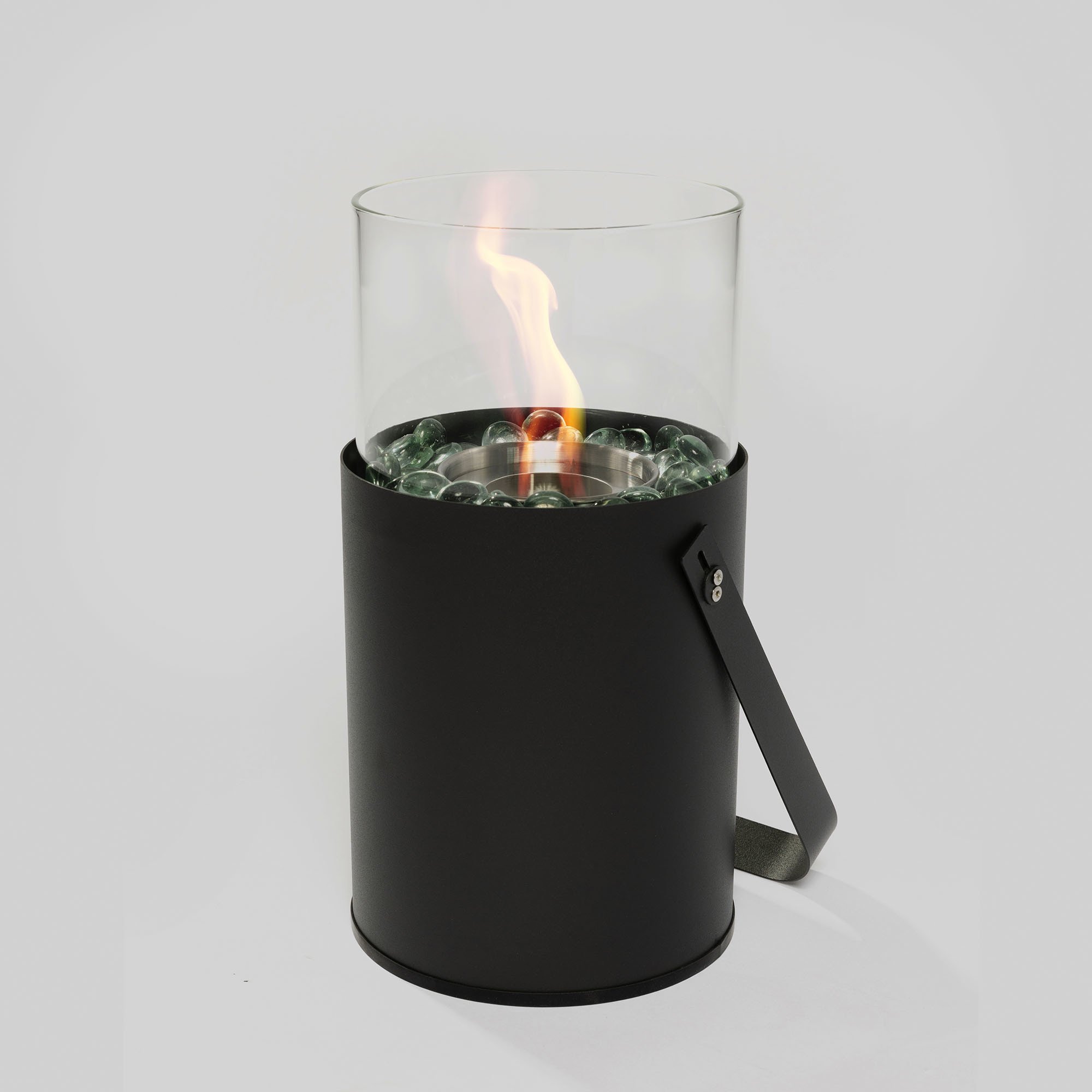 Portable Indoor and Outdoor Fire Pit, Bio-ethanol Fire Pit, Tabletop Fire Pit with Glass BeadsSteel Body with Glass Wind GuardStainless Steel Fire Pot,With Stainless Steel Fire Extinguishing CoverWith decorative glass beadsFuel: Bioethanol or gelHeat output: 3000BTU