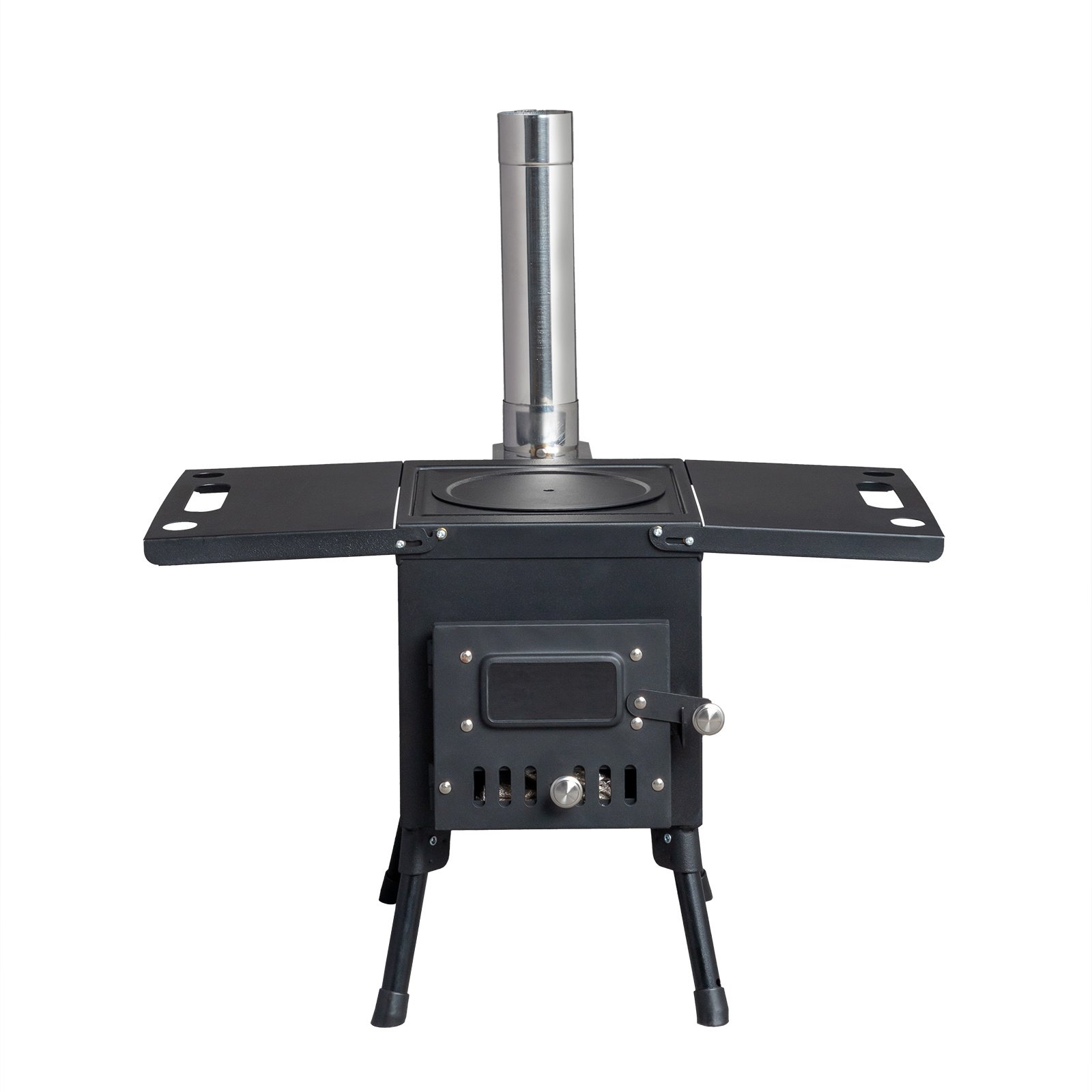 Portable Wood Stove.The folding racks on both sides increase the functionality of easy portability, 17.6lbs. The side frame can be used as a portable. The foldable legs can be folded flat under the stove. The chimney tube can be easily stored in the furnace for easy transportation and storage. The hook that comes with the wood stove makes it easy to clean the ashes at the bottom. Provide more convenience for your camping/hunting trip.