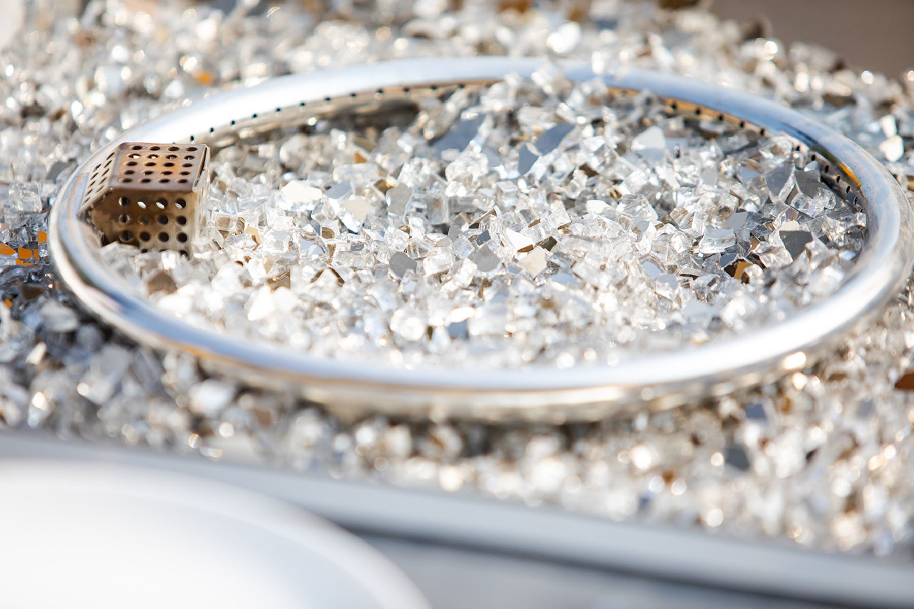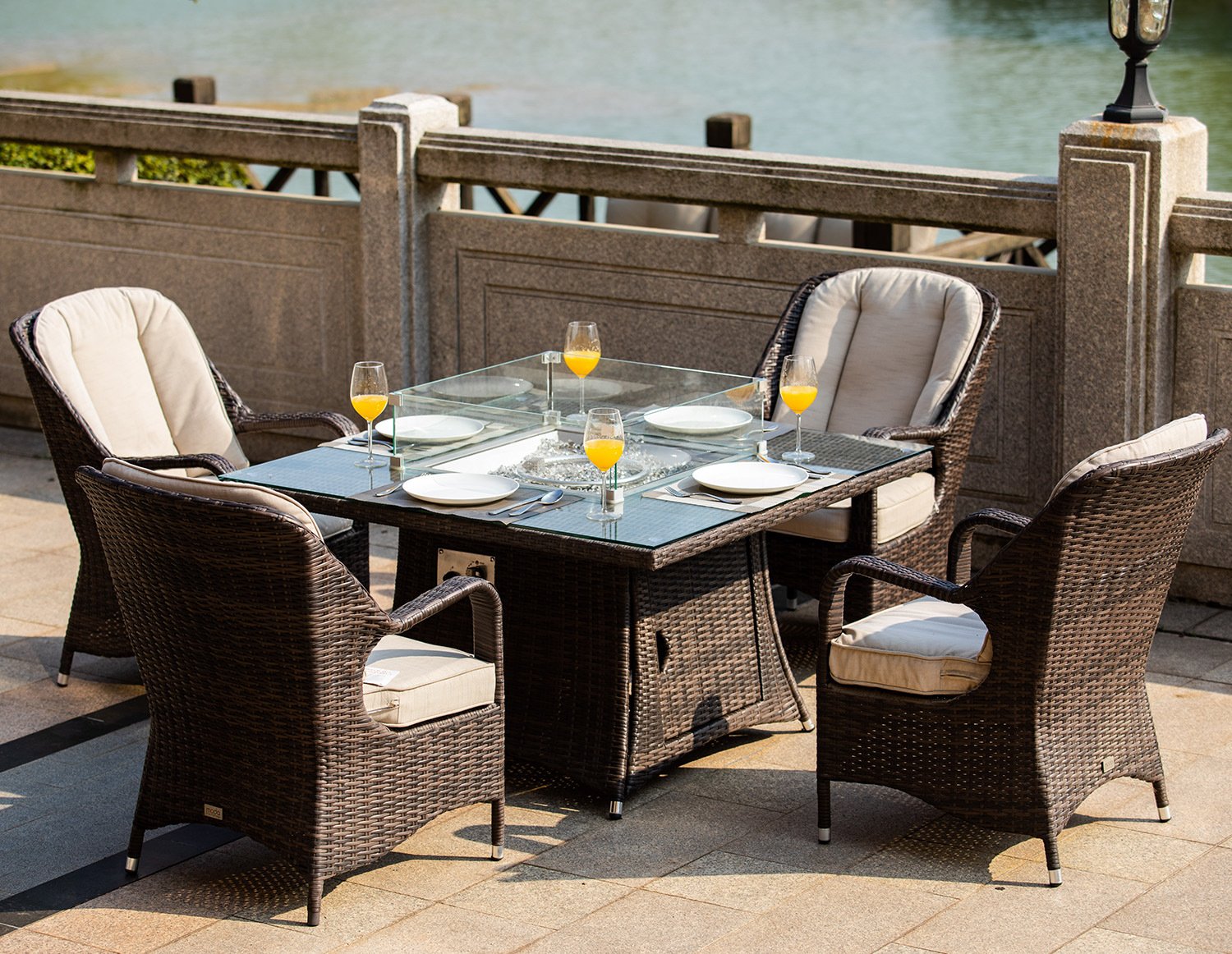 The dining table has a gas fire pit with multiple heat settings so you can prolong your outdoor relaxation long into the night.