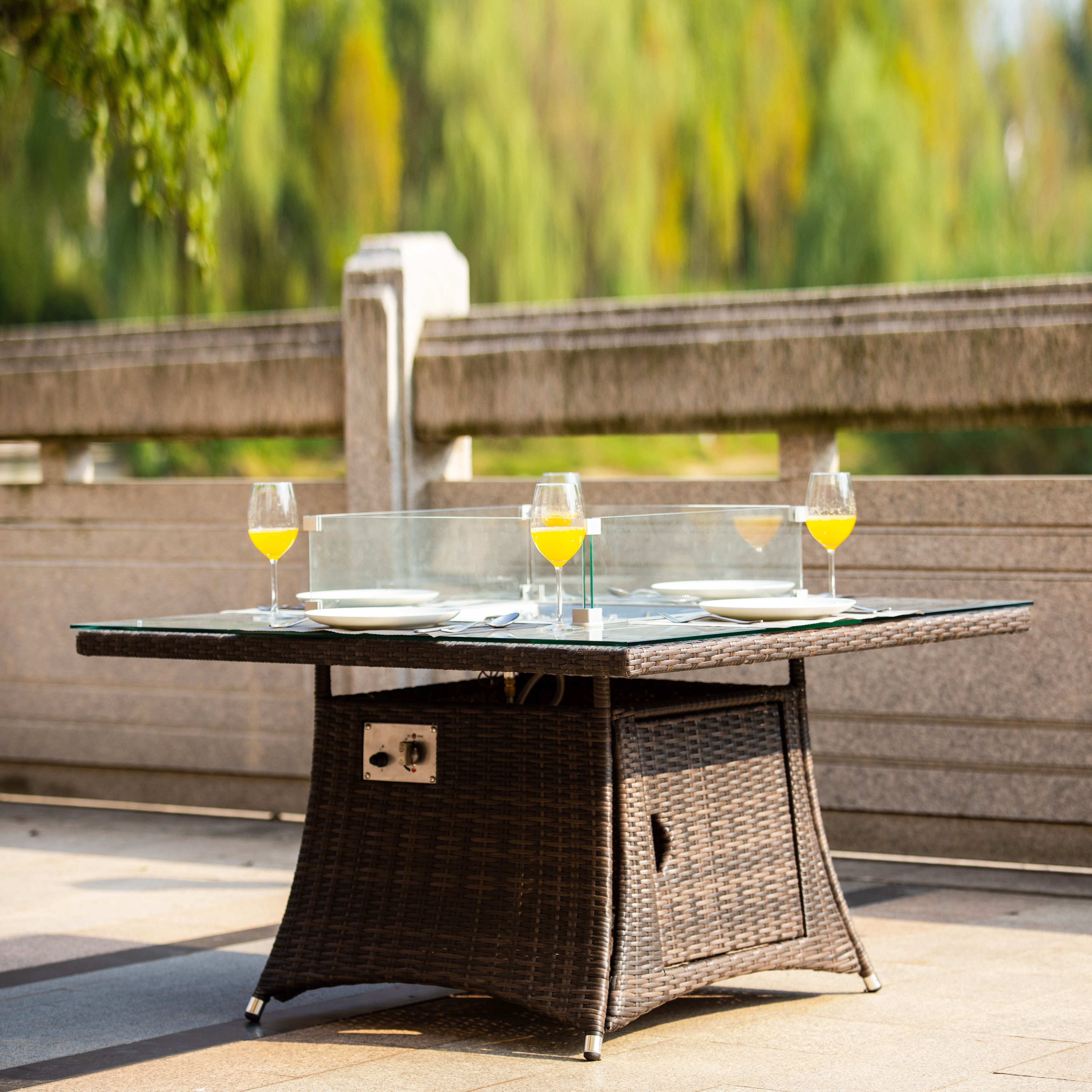 Direct Wicker Outdoor 4-Seat Rattan Square Gas Firepit Dining Set with Eton Chairs and Cushion