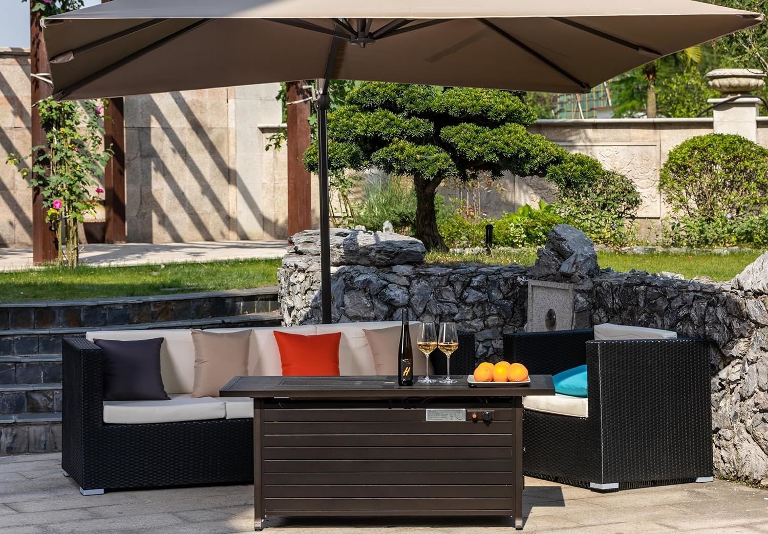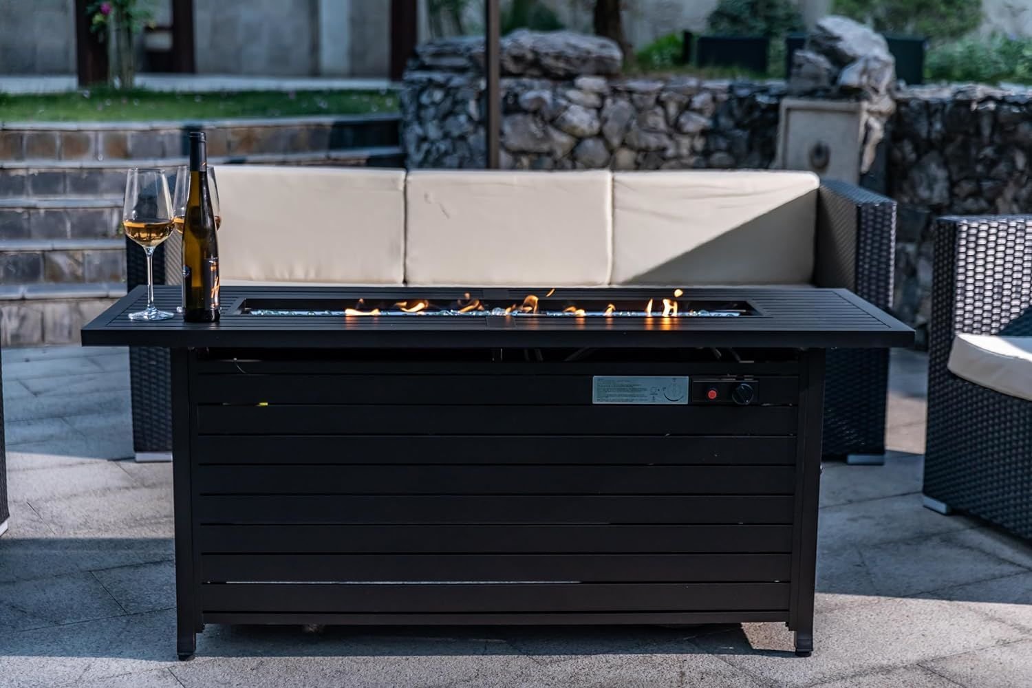 1. Firepit Table as Ambiance Maker: Rectangular fire pit design makes you and friends closer. The flames of the fireplace bring warmth and cozy atmosphere to the party, gather around the campfire and have a good conversation on your Patio, Deck, Garden, Backyard.