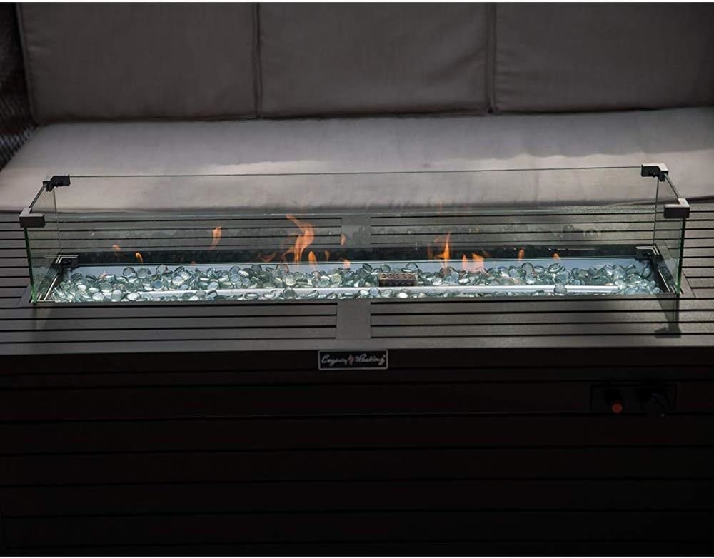 LEGACY HEATING Fire Pit Table Wind Guard, 38.1 x 10.6 x 5.9 Inch Rectangular Glass Wind Guard, Clear Tempered Glass Flame Guard, with Aluminum Alloy B