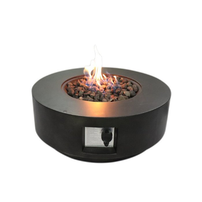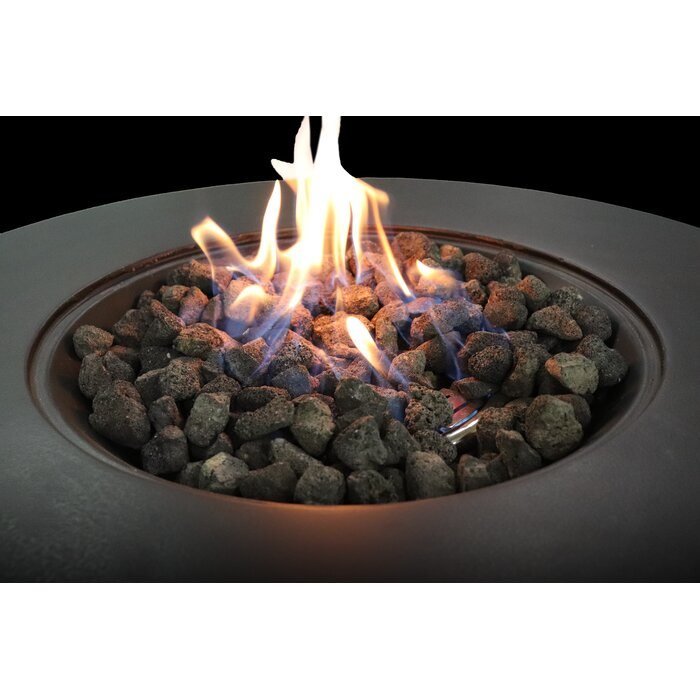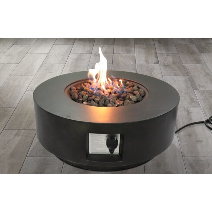 With a streamlined; rounded silhouette and versatile design; this outdoor fireplace keeps your patio or deck warm even on cool nights while complementing a streamlined; modern look. Crafted from weather-resistant reinforced concrete; it features a clean-lined round design for a simple; function-forward silhouette. This fire pit ignites with a push-button trigger; and features included lava rock filler; so it's ready to be turned on once it arrives. It accommodates both propane and natural gas and has a concealed compartment for a tank with an easy-access door.