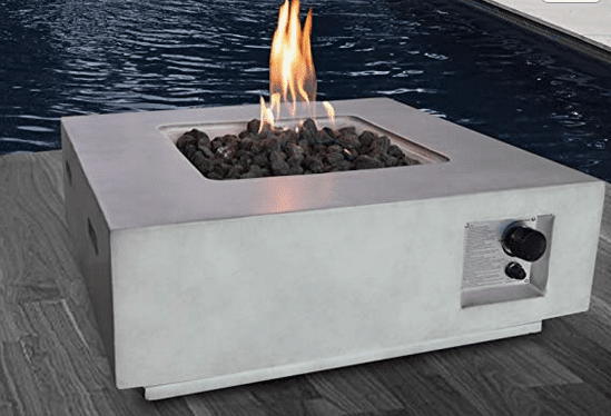 Living Source International Santiago 30" Square Fire Pit with Protective Lid | Outdoor Furniture for Home; Patio and Garden (Concrete Finish; Size :