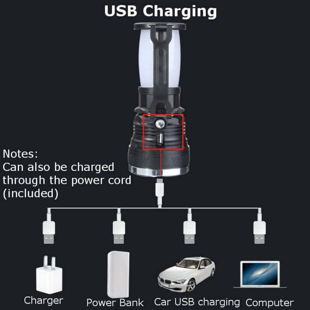 Portable multi-use camping lantern comes with 3 lighting modes.  Features a waterproof exterior for added convenience and can be used as a power bank to recharge your phone.