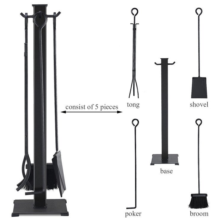 The fireplace decoration toolset includes tong, poker, base, shovel and brush.