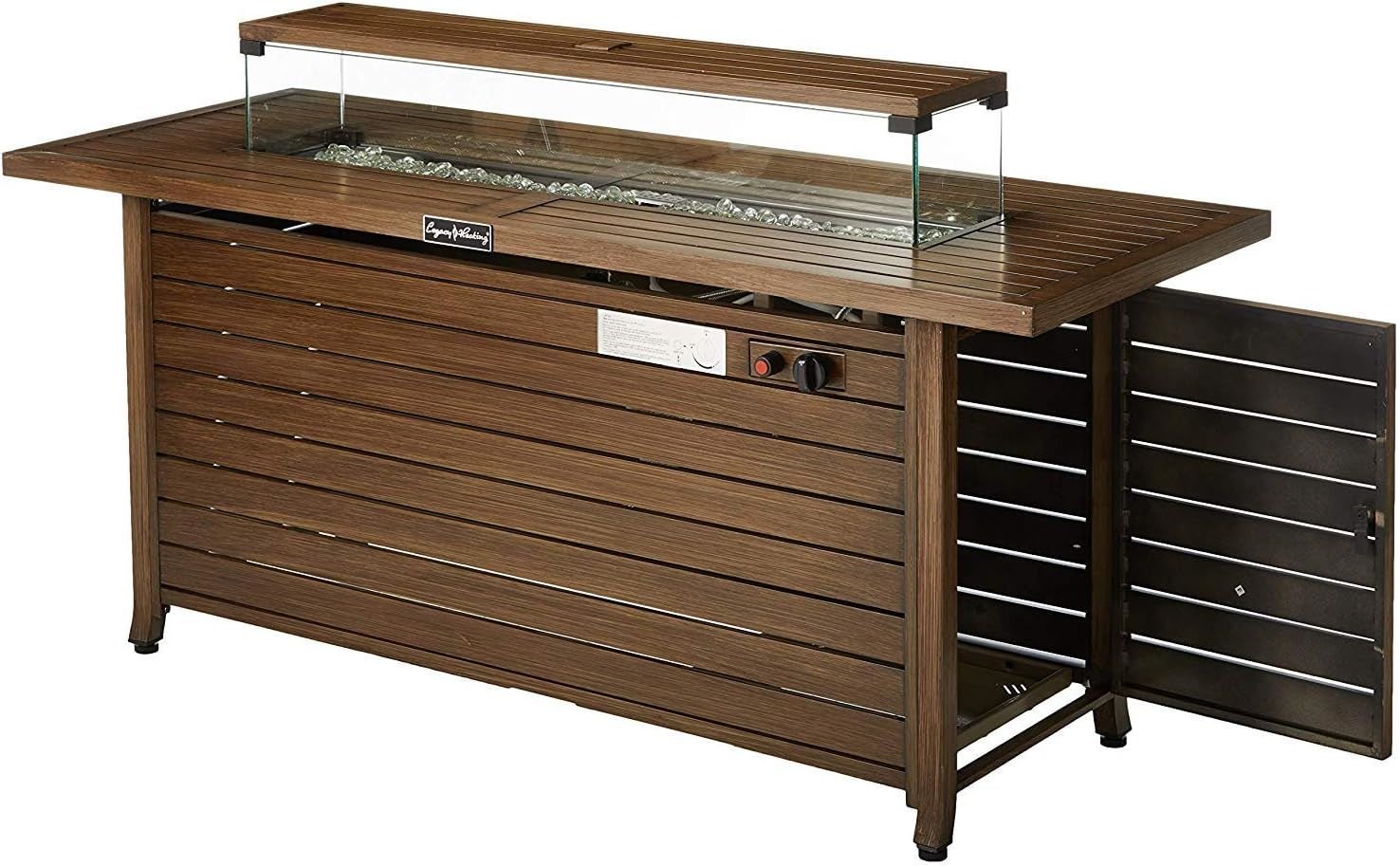 2. Gathering Heating Maker: 50,000BTU Gas Fire Pit Table provides ample warmth for your gatherings (8-10 people). Change your gas tank quickly with hideaway tank holder. Works with a standard 20-pound propane tank, propane gas fuel, warm and smoke-free burning, no polluting the environment, so you don't have to suffer from ash and smog.