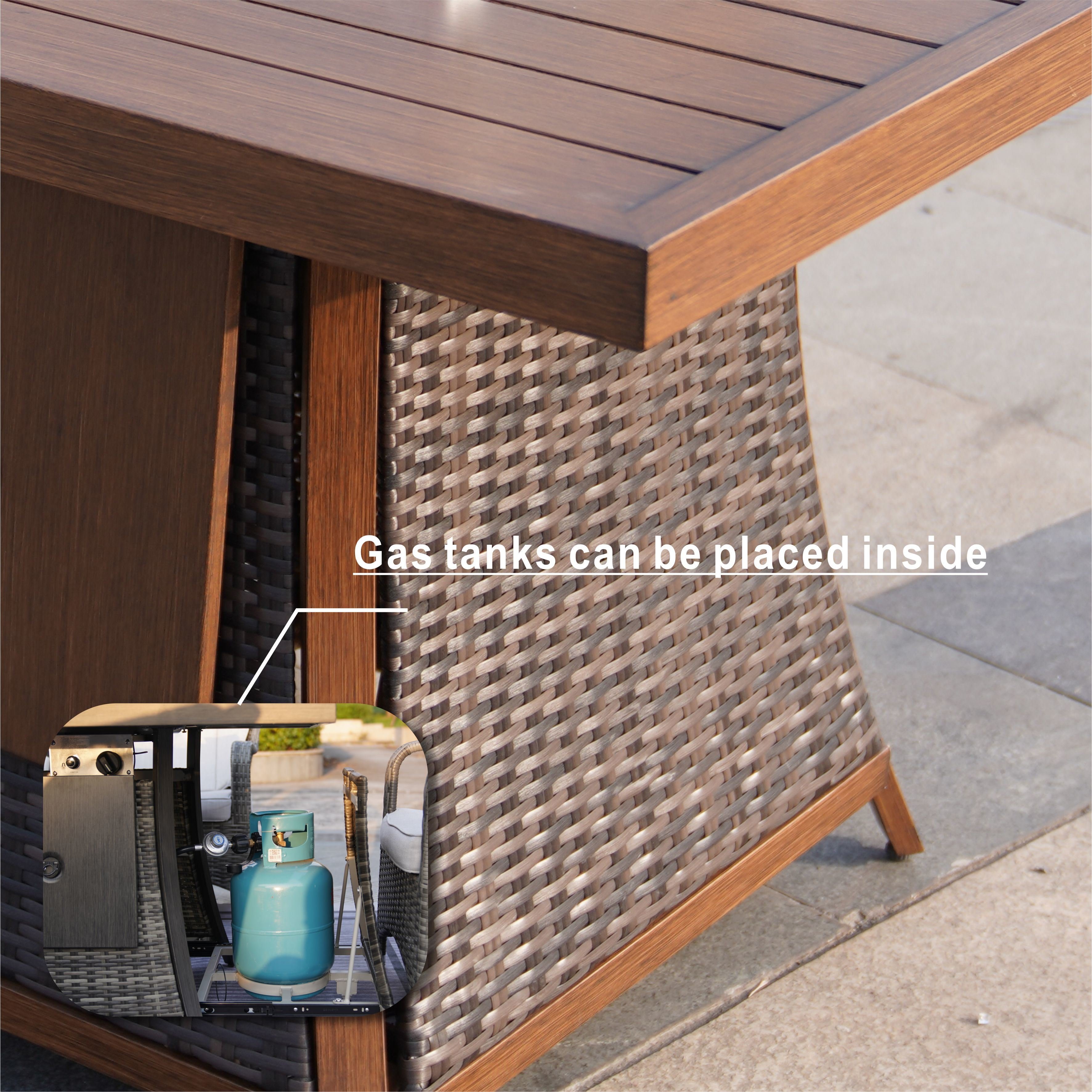 One aluminum gas fire pit table = one rectangle rattan wicker table + one firepit system