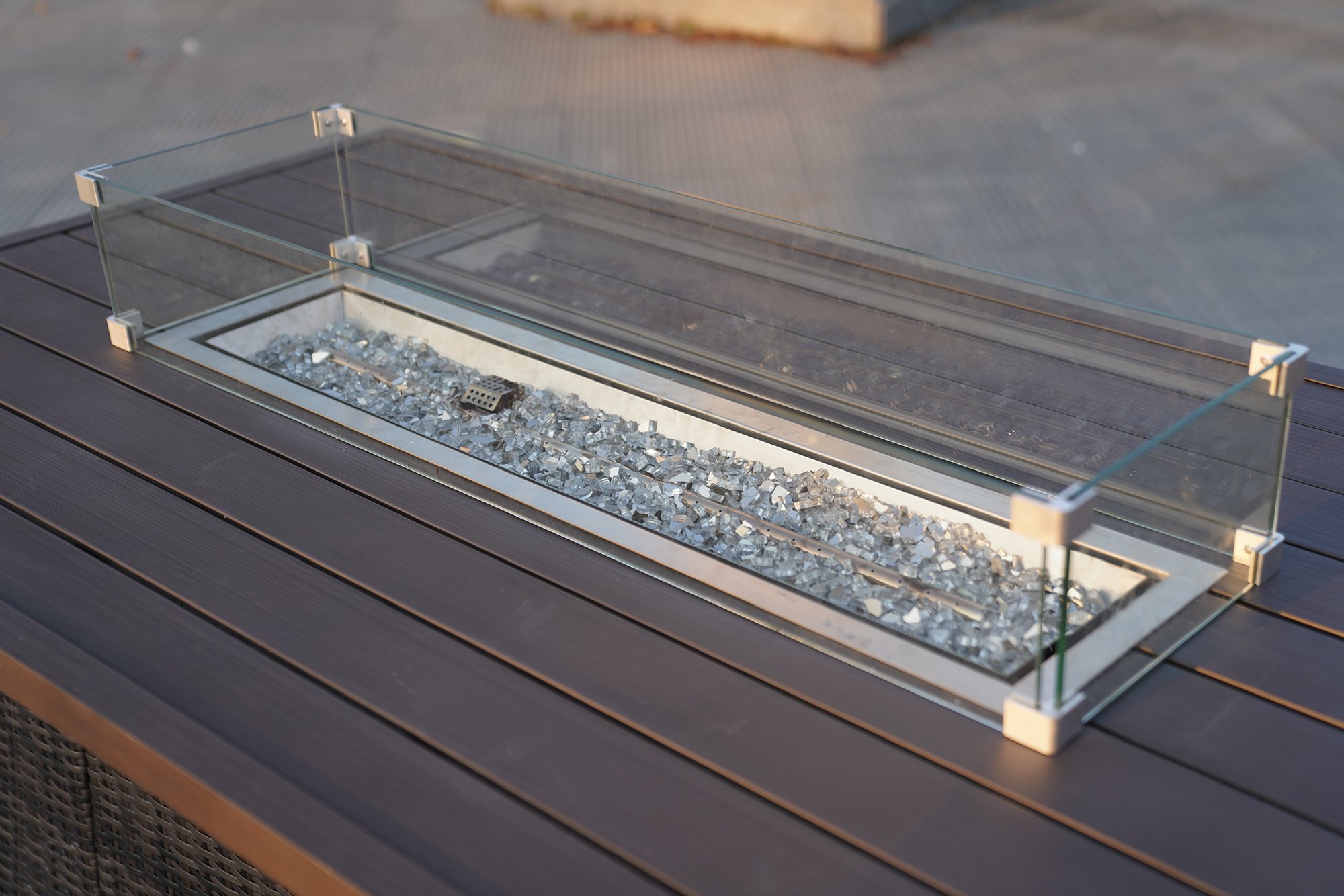 1.Stainless steel fire-pit cover, and glass enclosure crushed glass also are included