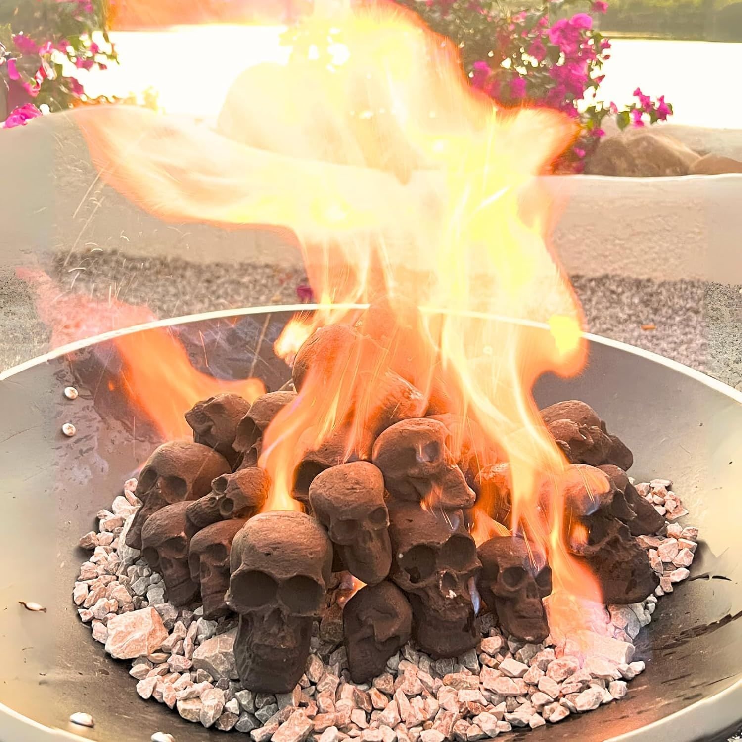 I highly recommend our skull fire logs to you. It's really, really, really cool!It has a total of 4 sizes, the largest is no bigger than a palm, the smallest is just a thumb. Therefore, his adaptability is particularly strong, it can be used in candlesticks, alcohol stoves, and can also be combined in fire pits and fireplaces, wherever it is sure to be the focus. Each one of our skull firepit heads is handmade, you can fully feel the vividness of their shapes, each one is very similar, but they are not the same, you put them there, the shapes are very vivid. We specially set 7/10/12 as a group, making it very easy to put together, you can just buy one to use the size you need, but also try different sizes of wonderful combinations, it will definitely decorate your party, let everyone marvel at your creativity. Package Included: 7pcs ceramic Skull logs set: "6.1 x 5 x 5.8cm" ceramic skulls for fire pit 4 Different Sets Size: 7pcs skull gas logs set: "7 x 5 x 7cm" firepit skulls large 7pcs ceramic Skull logs set: "6.1 x 5 x 5.8cm" ceramic skulls for fire pit 10pcs Skull firelogs set: 5pcs "4.3 x 2.5 x 3.4cm" fireplace skulls and 5pcs "5 x 4 x 4cm" ceramic skulls for fire pit 12pcs firepit skull logs set: 3pcs "5 x 4 x 4cm" skulls for fire pit, 3pcs "6.1 x 5 x 5.8cm" skull fire logs, 3pcs "4.3 x 2.5 x 3.4cm" skull fire pit stones,3pcs "7 x 5 x 7cm" human skull fire pit Experience a spine chilling Halloween with our Fire Pits Skulls!